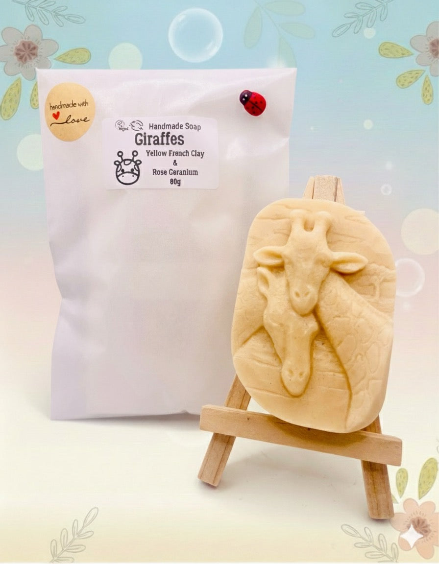 Our gorgeous Giraffe soap features two gentle giants in a cosy cuddle. Each sopalĀ is handmade fresh to order, and you can choose your favourite clay colour and essential oil to make it your own.