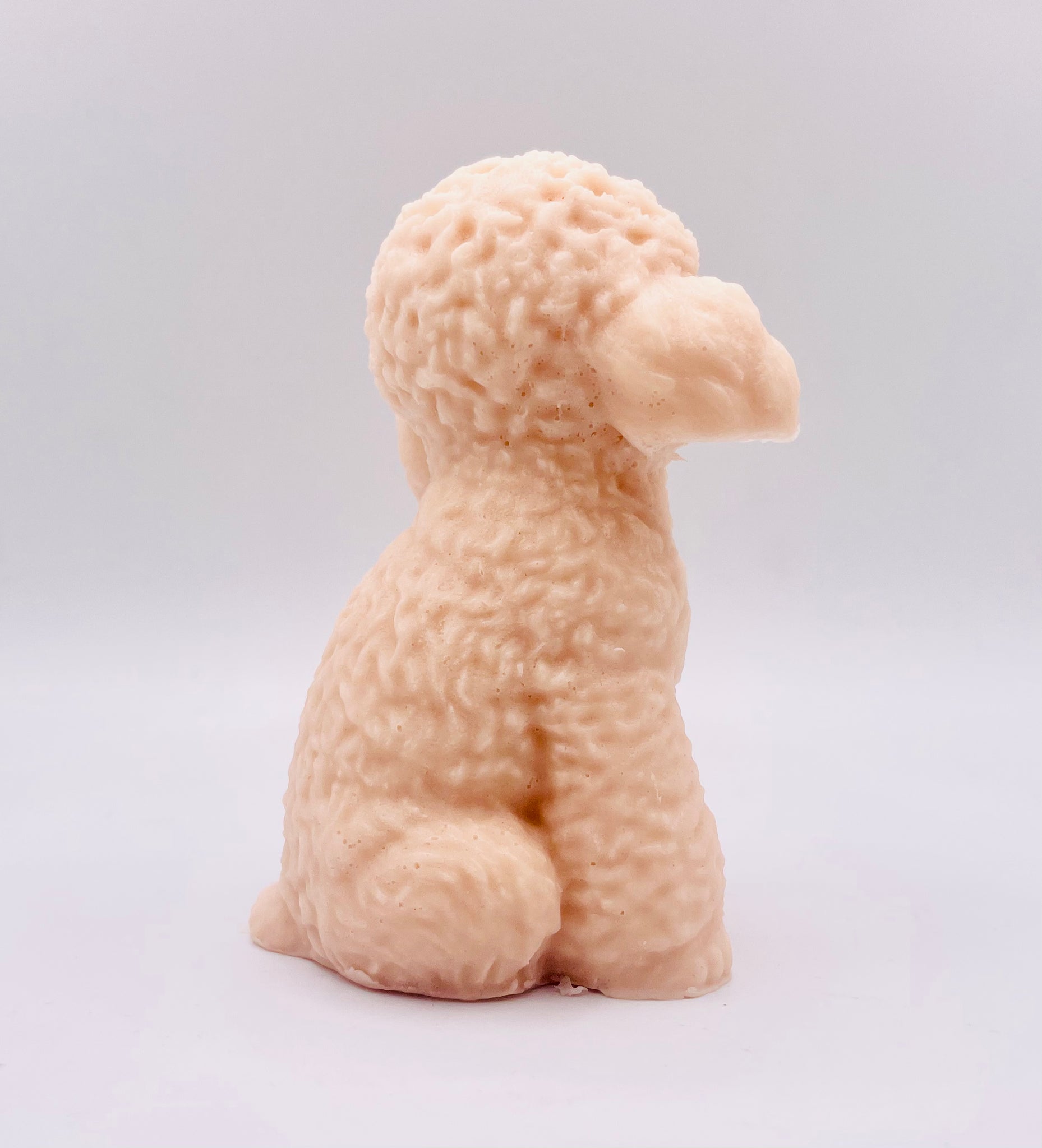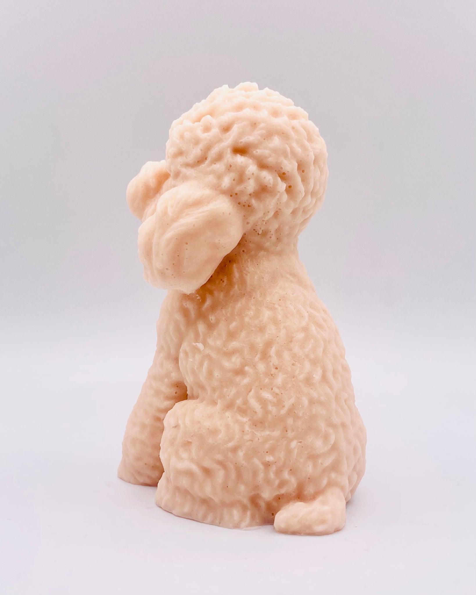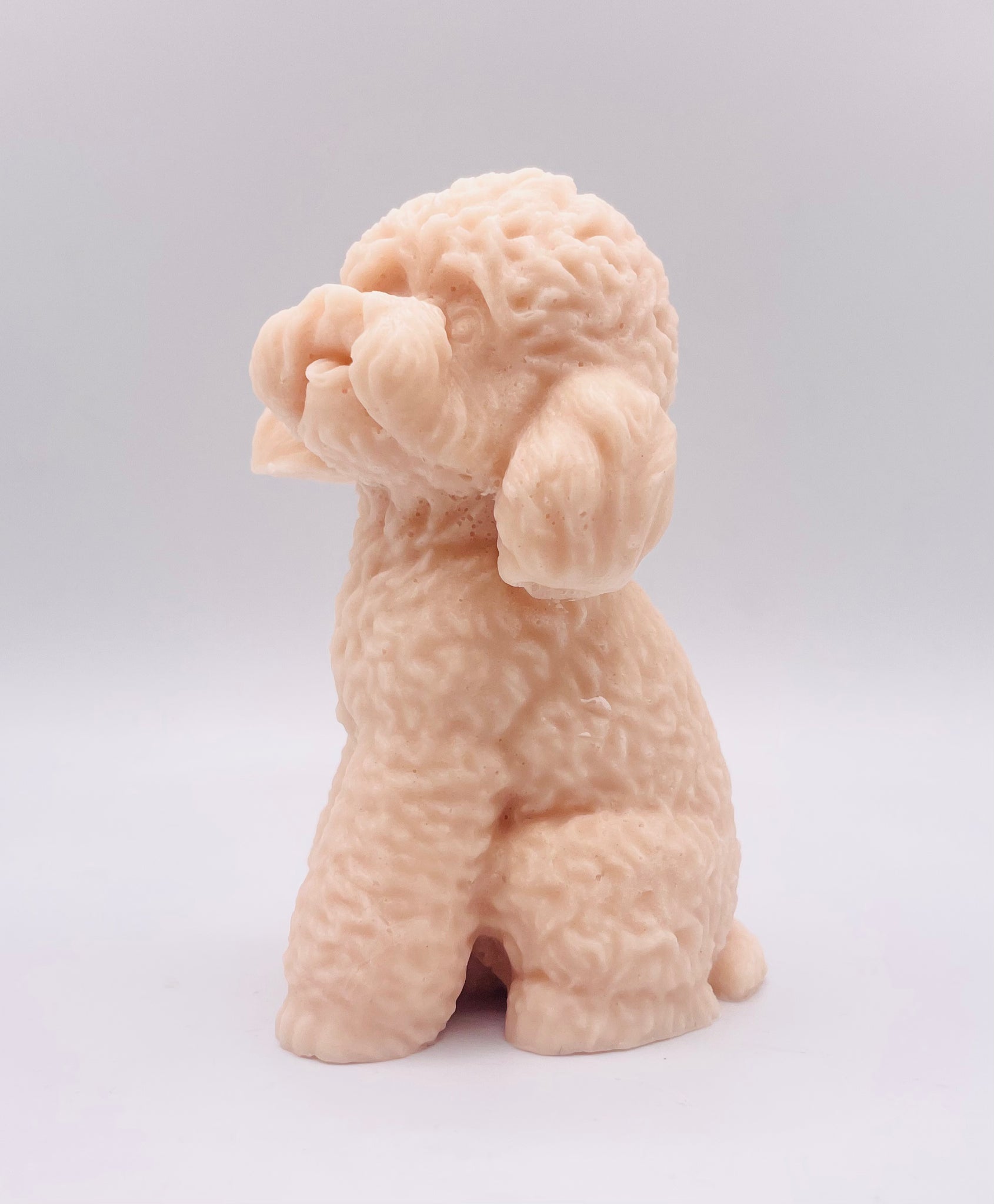 This large, handmade vegan soap is shaped like an adorable cockapoo dog. With beautifully detailed curly fur, floppy ears, and a sweet little face.