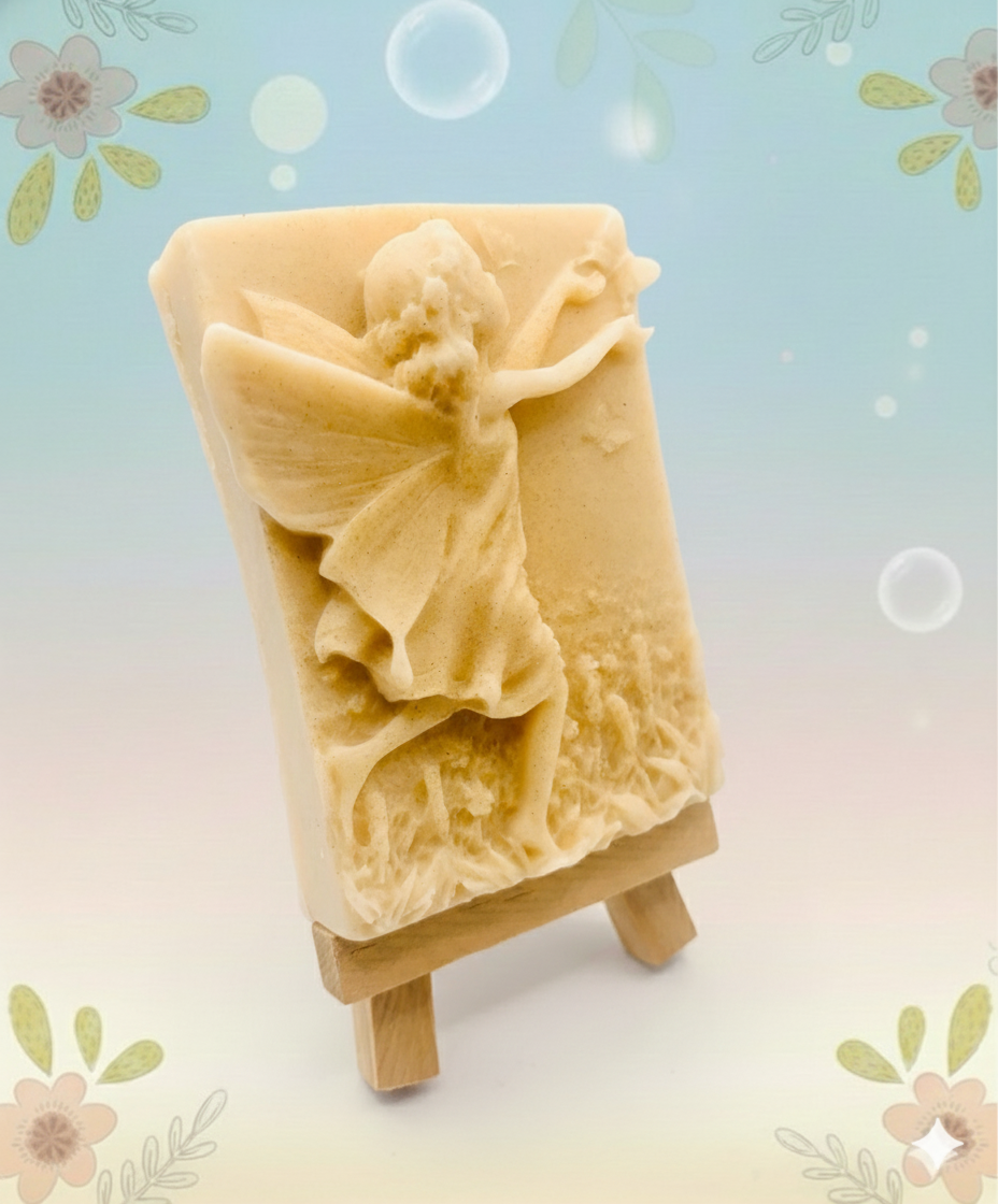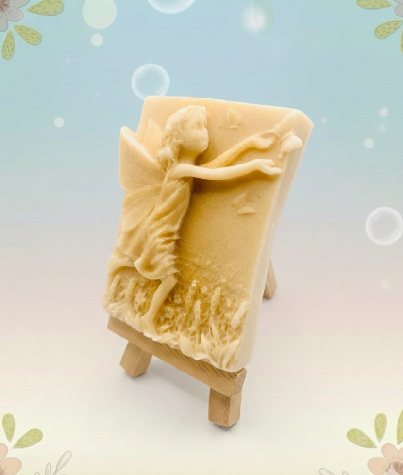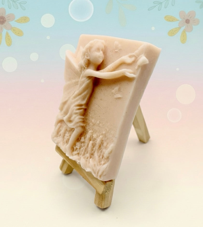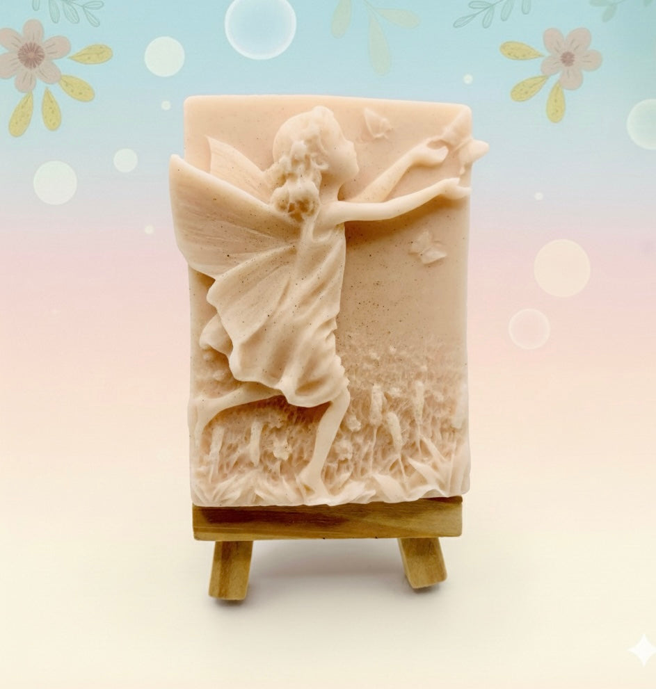 This enchanting bar features a beautifully detailed scene of a playful fairy reaching for a delicate butterfly - the perfect way to add a touch of magic to your bathroom! Whether you're shopping for a whimsical gift or looking to treat yourself, this fairy is ready to flutter her way to your home. Handmade using sustainable, vegan, and cruelty-free materials.