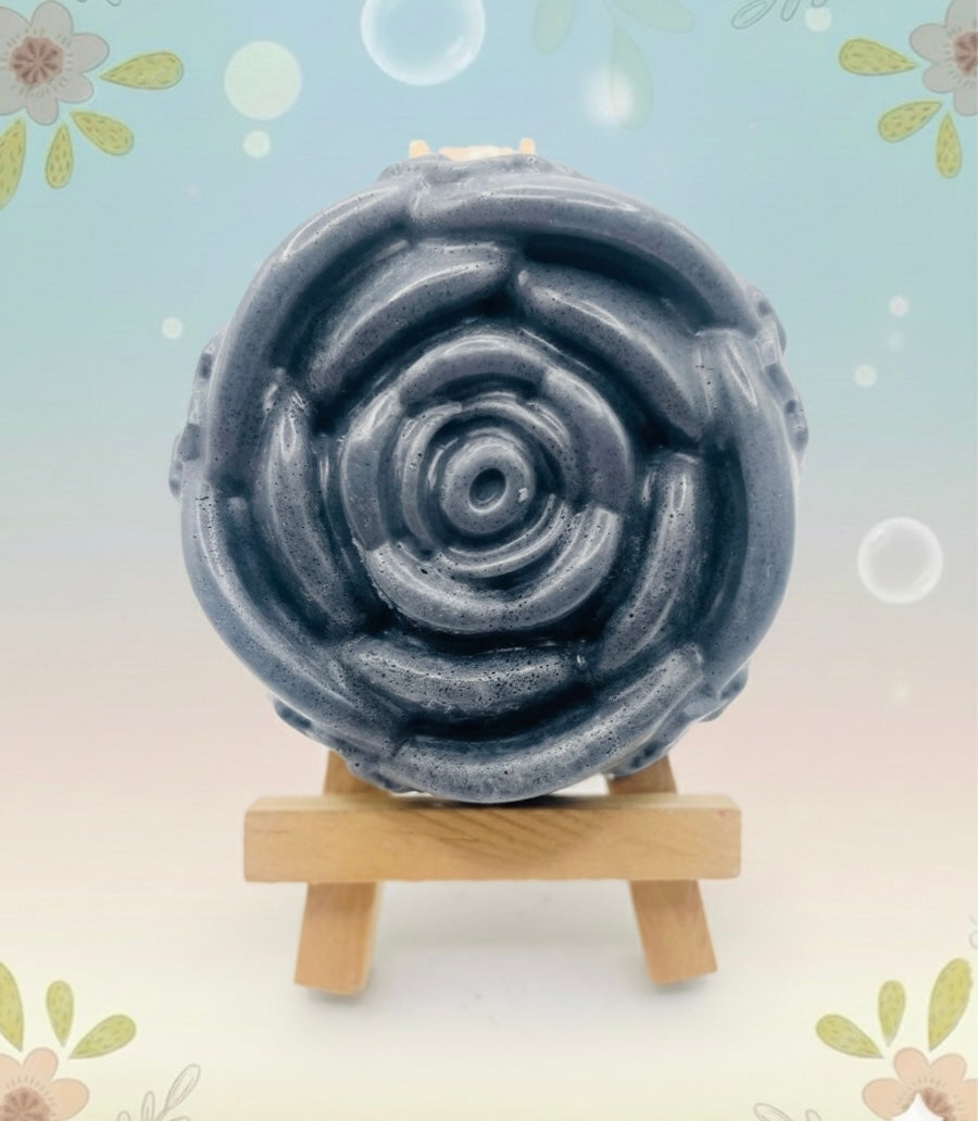 Handmade vegan soaps featuring a detailed rose flower. crafted with natural French clays, activated charcoal and essential oils. a eco-friendly, zero waste gift that’s cruelty-free, skin-nourishing, and perfect for friendship gifts and Mother’s Day. Small business UK