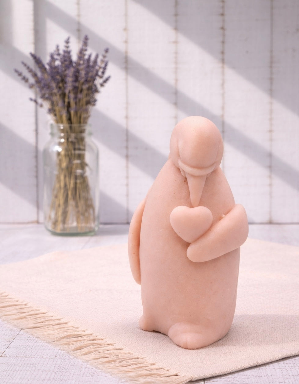 Ready to waddle into your heart! This adorable handmade Penguin & Heart vegan soap features a sweet penguin holding a love heart, making it one of the cutest additions you can add to your bathroom sink.