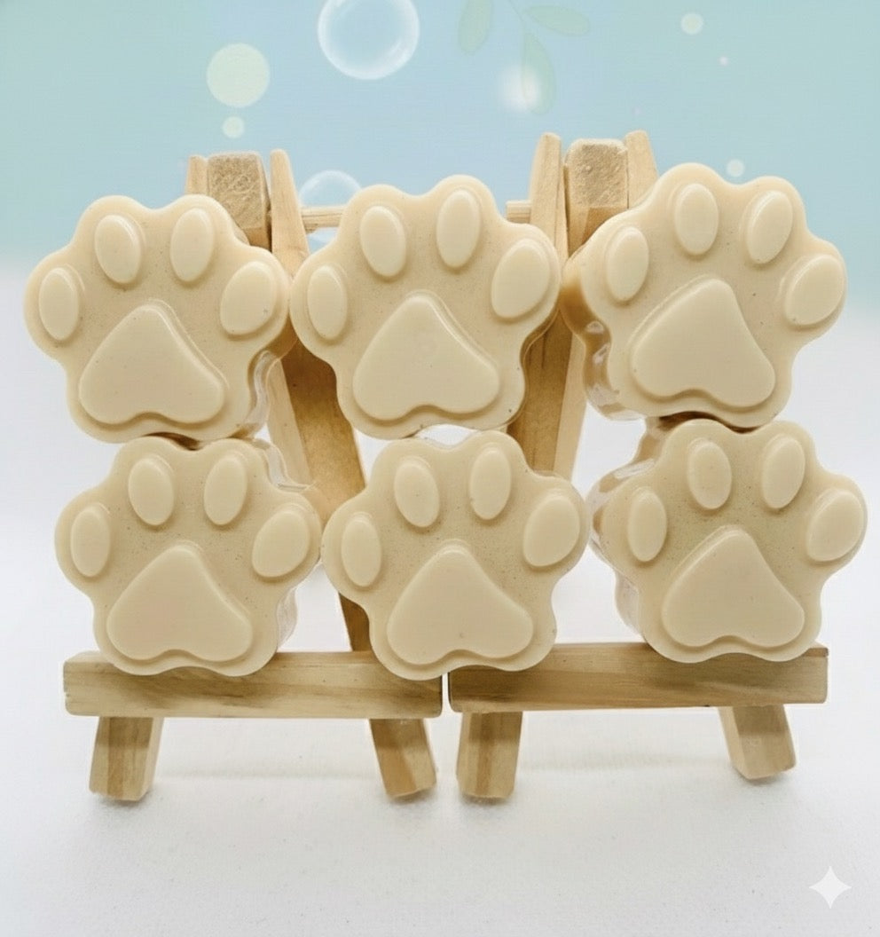 Each set includes six charming paw-shaped soaps. Ā Available in your choice of colour and essential oil.