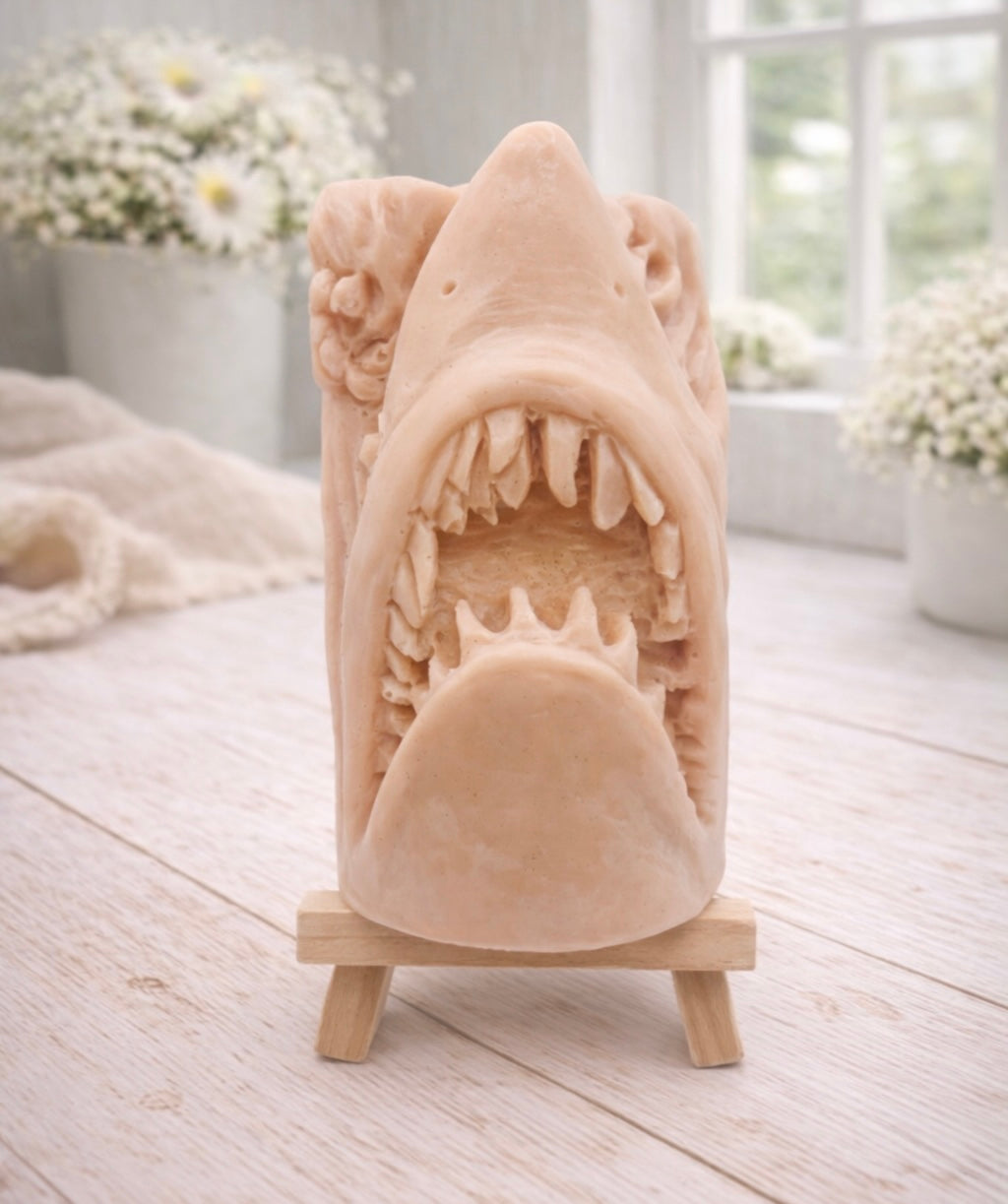Our Shark Attack vegan soap is ready to make a serious splash! This incredibly detailed artisan bar captures the raw power of the ocean’s most iconic predator, making it the perfect choice for thrill-seekers, shark fans, or anyone who wants a soap with some real "bite". This bar is crafted using sustainable, vegan, and cruelty-free materials.